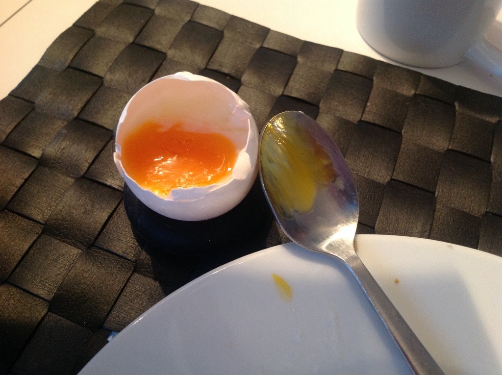 Det er lørdag, tempoet er nedpå – Lisa og Marit og jeg vil ha egg til frokost…jeg er tidlig oppe med minsten og er nysgjerrig på hva sviddå kan gjøre med egg. Tiden er på vår side og fire egg senkes i badet.