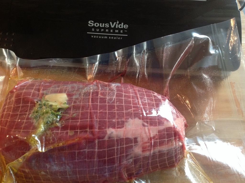 The main course was prepared in the «sviddaa» or my beloved sous vide supreme – a lovely Sunday roast it turned out to be. The roast was about 1,3 kg and need at least 18 hours to swim at 63 degrees. With the roast I added some good olive oil, black pepper and some garlic. Note to self: the roast could have stayed in the bath for a few more hours and maybe with slightly lower temperature. Any experiences out there?