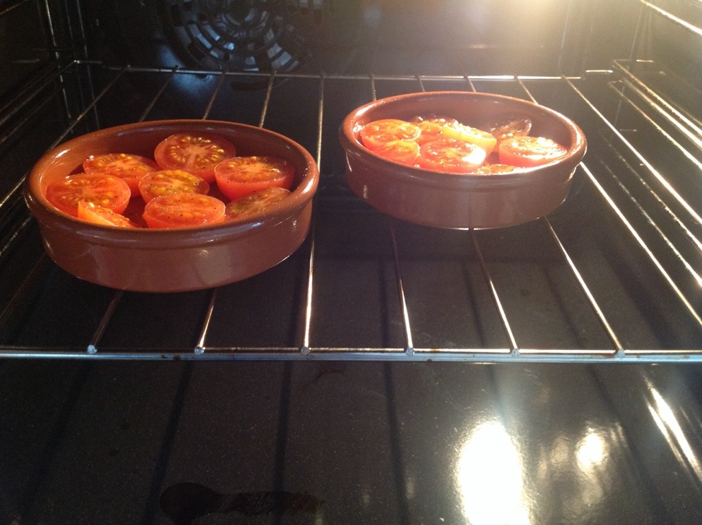 At the same time I put sliced aroma tomatoes drizzled with some olive oil in the oven at 60 degrees. Leave them for 16 hours and you’ll get some amazing sun dried tomatoes.