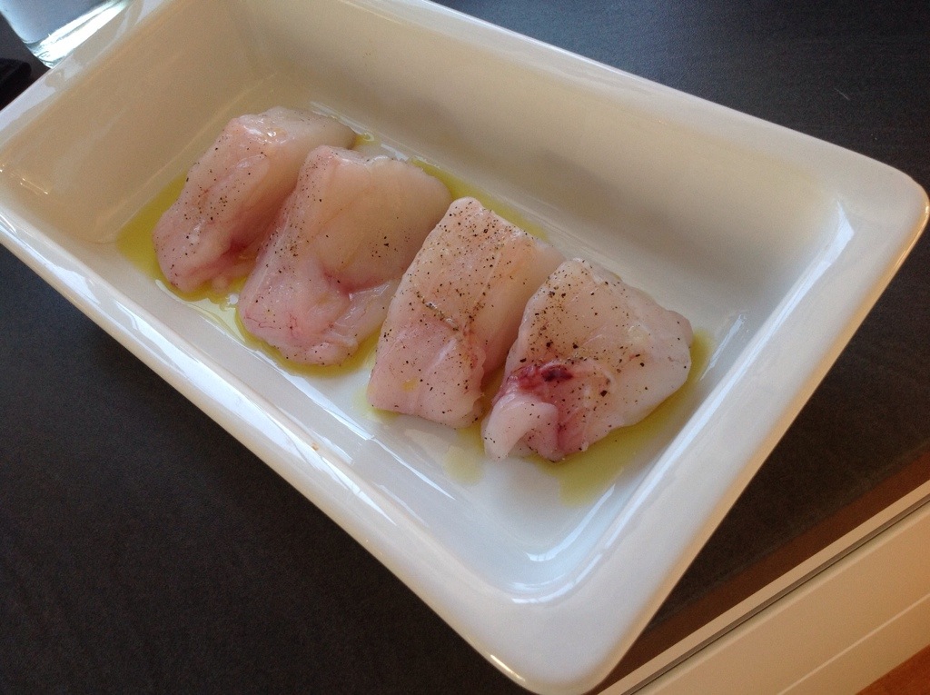 Jeg var heldig og fikk tak i en flott filet på rundt 750 gram. Jeg bestemte meg for å presentere fisken på to måter. En sous vide og en ovnsbakt.