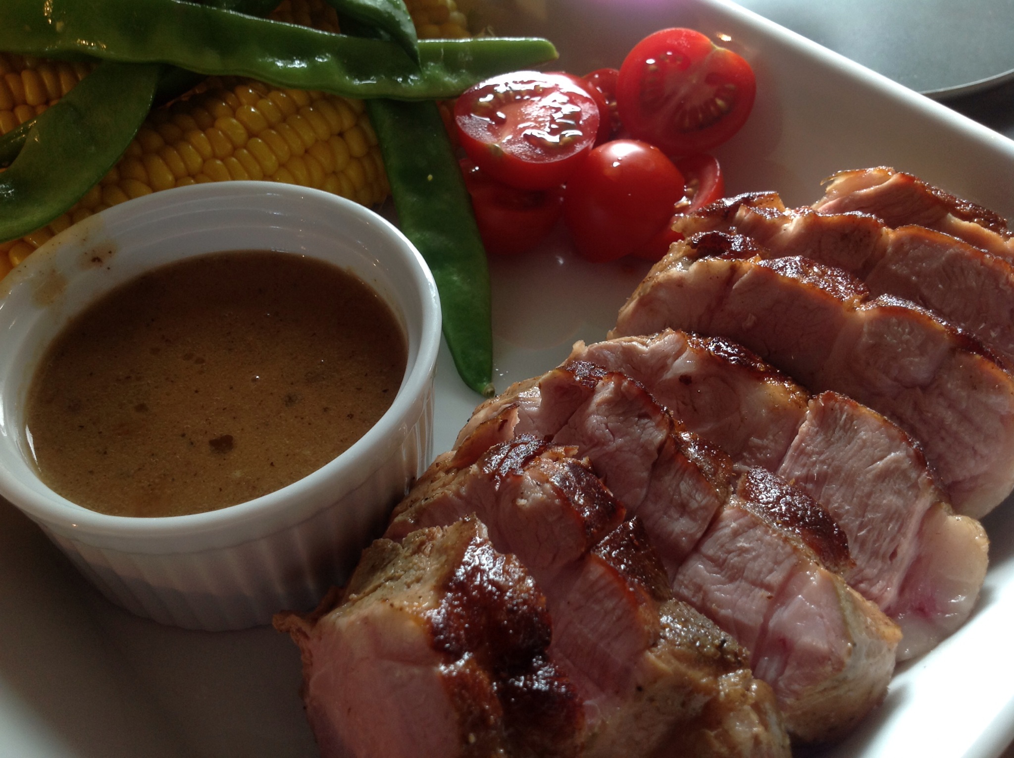 What a lovely and tasty Sunday dinner – shoulder butt (boneless) served with fresh vegetables and a mustard infused sauce:-)