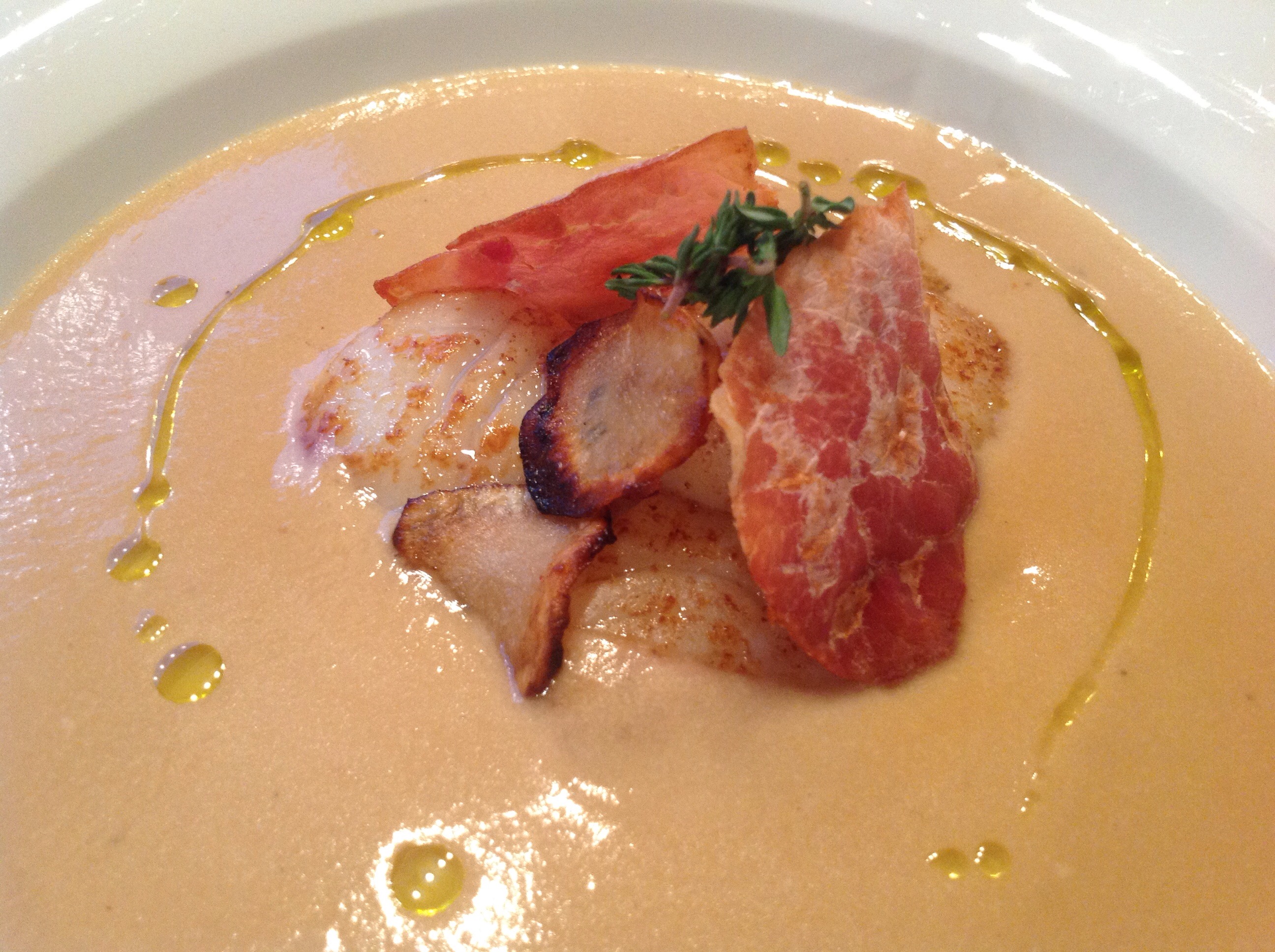 Med inspirasjon fra Modernist Cuisine, Heston Blumenthal og Trine’s matblogg ble en veldig spennende variant av kremet jordskokksuppe kreert på kjøkkenet idag.
