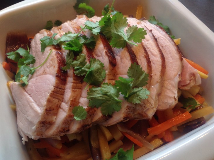 Det er søndag og hva egner seg bedre enn å invitere familien til svinefest. Idag fikk sviddå kjørt seg med en storvokst surret svinesteik på 2,5 kg. Den fikk hele 10 timer i bassenget med temperaturen innstilt på 62,5 grader og resultatet ble nydelig. Jeg brukte den nyttige app’en fra PolyScience, SousVide Toolbox, for å finne fram til rett temperatur og denne verktøykassen sviktet ikke denne gang heller.