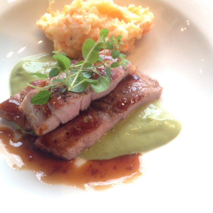 Nakkekoteletter har aldri svømt i sviddå og de fikk muligheten til en real treningsøkt i bassenget. Jeg ville skape en enkel, men spennende hverdagsrett. Kotelettene fikk følge av en squashpuré, rester av en rødvinsreduksjon som saus og en en stappe av rotgrønnsakene gulrot, pastinakk og persillerot sammen med noen pottiser.