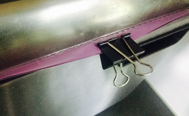 Senk posen sakte ned i en bolle med vann for å presse ut luften og forsegl. Legg posen i bassenget og pass på at toppen ligger over vann. Jeg pleier å feste en god, gammeldags paper clip på toppen av posen slik at denne kan legges over kanten.