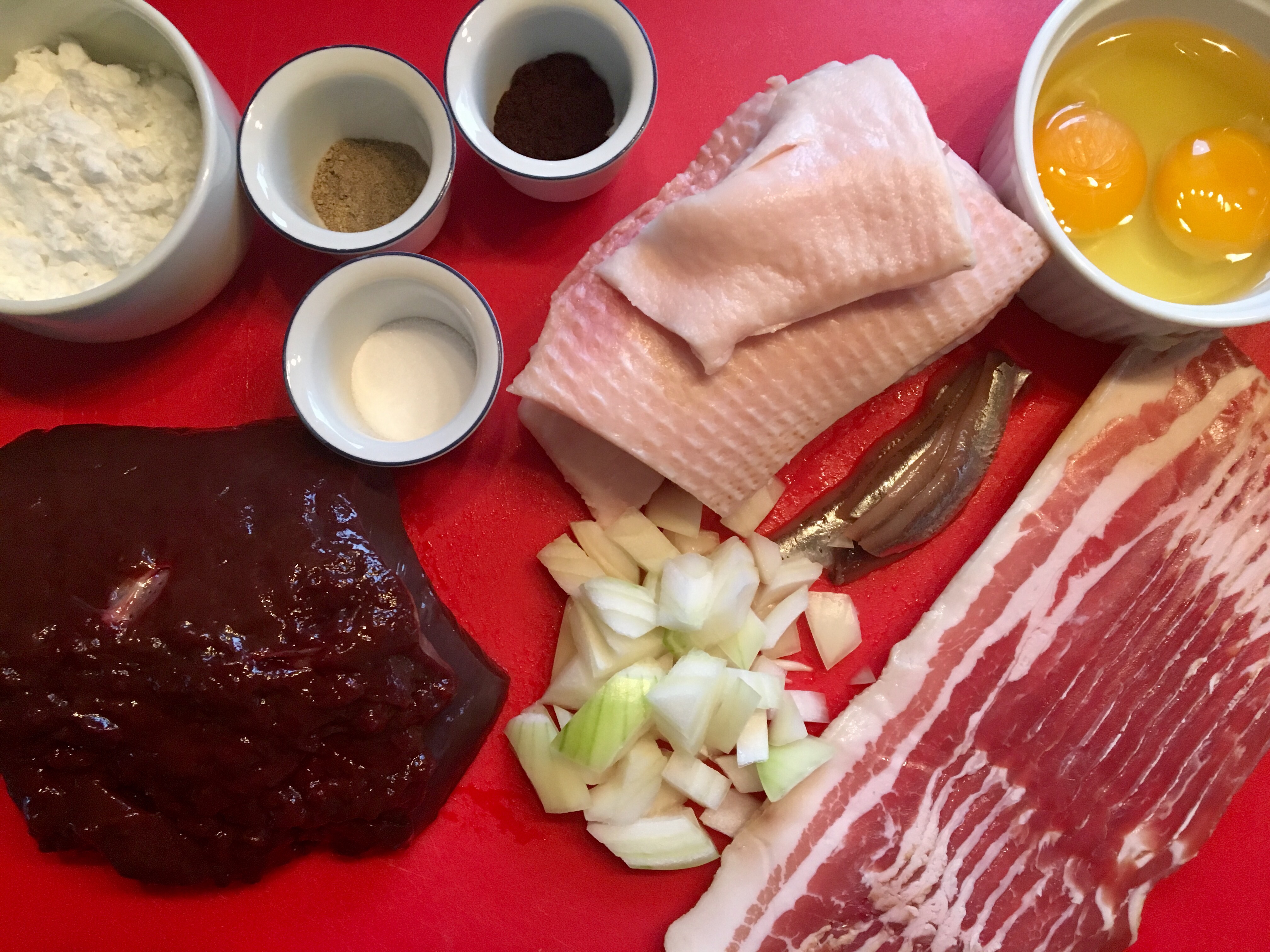Du trenger 500 g lever av okse eller svin, en kvart hakket løk, noen skiver bacon, 200 g sideflesk, 2 egg, 50 g potetmel, 1 1/2 ts salt, 1/2 ts pepper og 1 ts nellik. Dette rekker til å lage en postei dersom du bruker brødform.