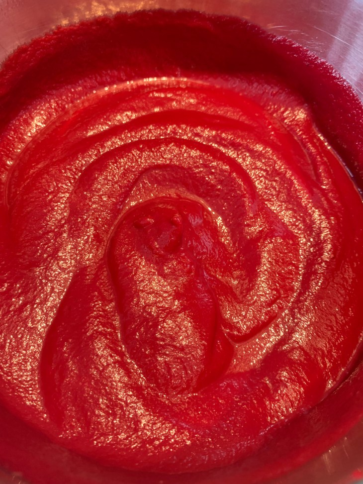 Begynn med rødbetpuréen. Du trenger 3 store rødbeter. Skrell og del i båter. Det er lurt å bruke hansker så slipper du å hilse gjestene dine velkommen med rosa fingre. Jeg elsker trykkokeren og brukte den for å koke betene møre. Litt vann i bunn av gryten, et par gode klatter med smør og fullt trykk i 18 minutter. Tiden tar du fra fullt trykk er oppnådd. Har du ikke trykkoker så koker du betene møre på vanlig vis.