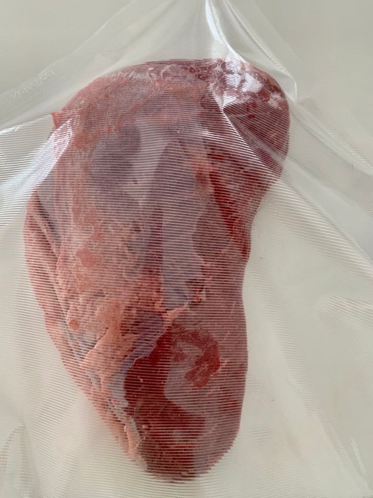 Jeg var heldig å finne et flott stykke kalveculotte på anstendige 1,2 kg. Den kunne se fram til en heftig svømmetur på 7 timer i behagelige 58 grader.