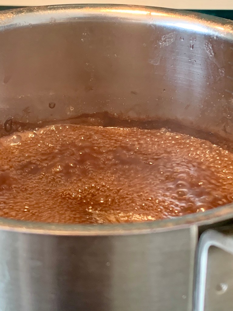 Til sausen trenger du 1/2 sjalottløk i syltynne skiver, et pr ss nøytral olje, 2 dl rødvin, 2 1/2 dl lammekraft (Jacobs bruker jeg), 50 g smør i terninger, salt og pepper.